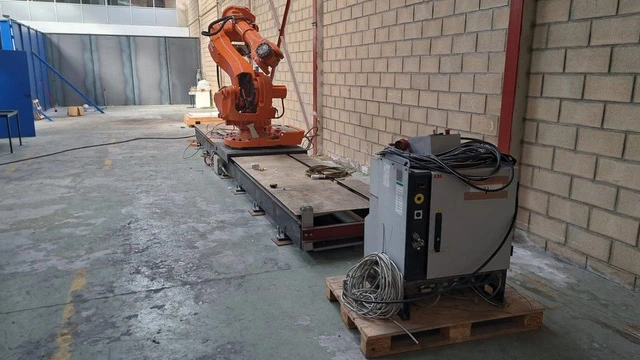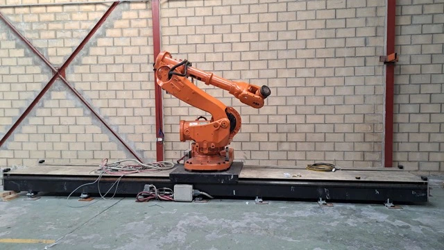ABB IRB 6650 3,2m/125kg avec contrôleur IRC5, monté sur un rail linéaire de 7 mètres